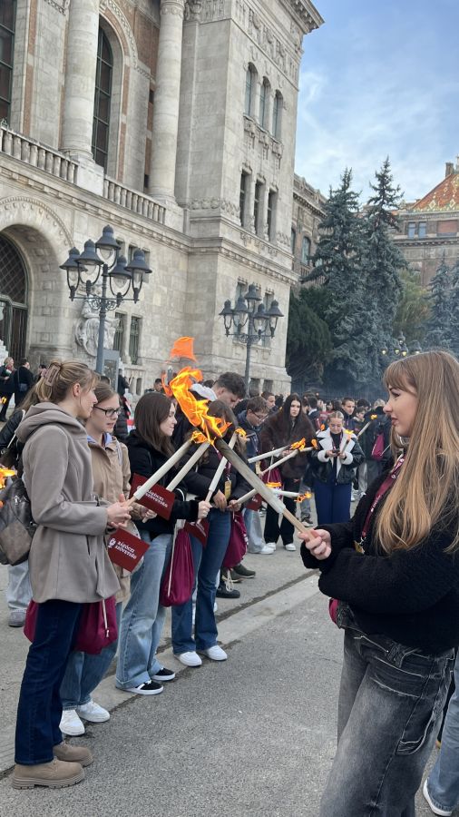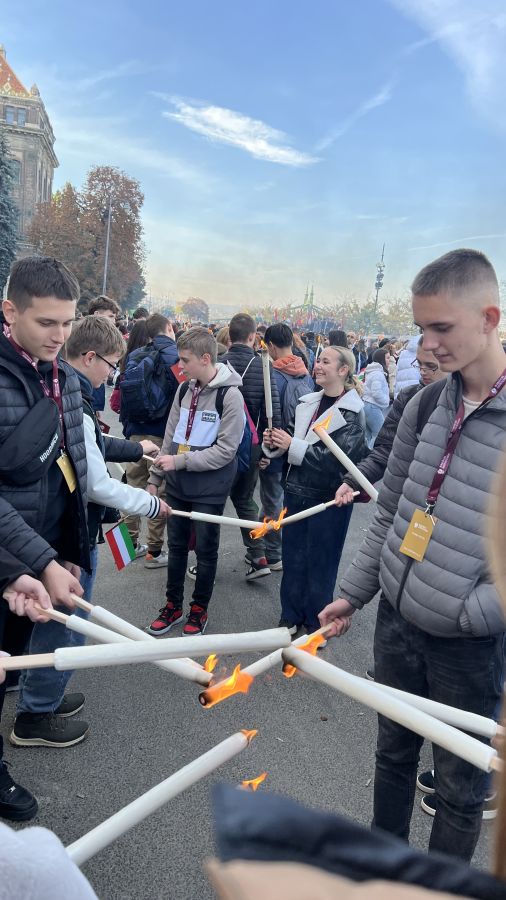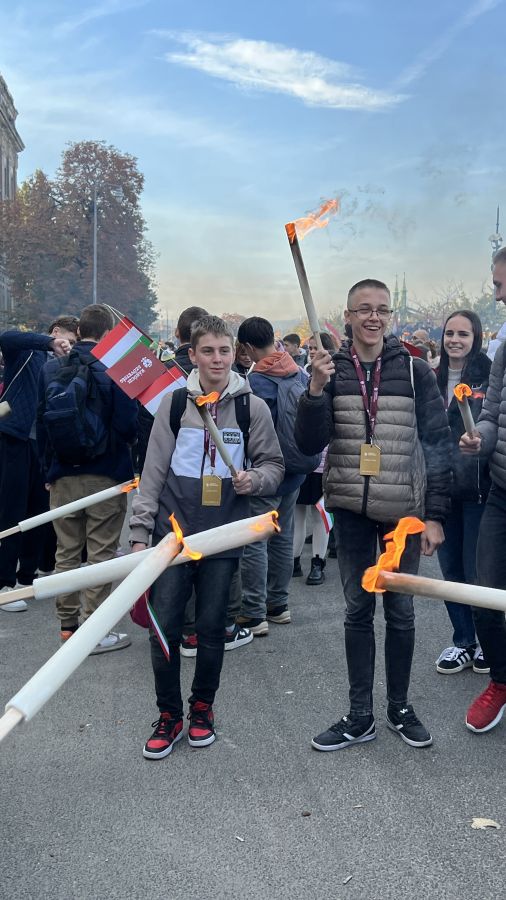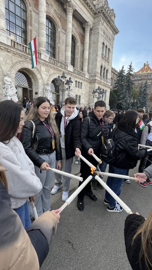 Október 22-e különleges napként vonult be diákjaink emlékezetébe, hiszen a Rákóczi Szövetség meghívására szervezett budapesti kiránduláson nemcsak a főváros szépségeit fedezhették fel, hanem méltó módon emlékezhettek meg az 1956-os forradalom hőseiről is. A napot egy különleges program nyitotta, amikor a diákok sétahajózás keretében csodálhatták meg Budapest ikonikus épületeit. A hajóról lenyűgöző panoráma tárult eléjük, ahol a Parlament és a Budai Vár látványa különleges élményt nyújtott. Az esemény csúcspontja az esti fáklyás felvonulás volt, amely a megemlékezés egyik legmeghatóbb és legkülönlegesebb pillanata lett. A fáklyák fénye bevilágította a budapesti utcákat, miközben a diákok az ünneplő tömeg részeként vonultak végig a városon, érezve a történelem súlyát és a közösség erejét.