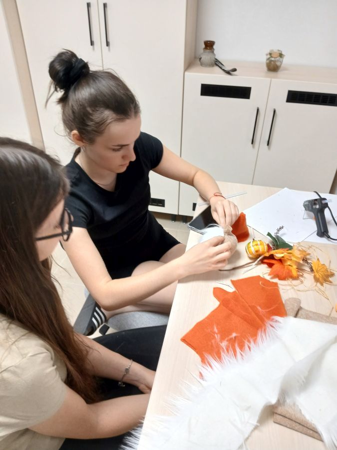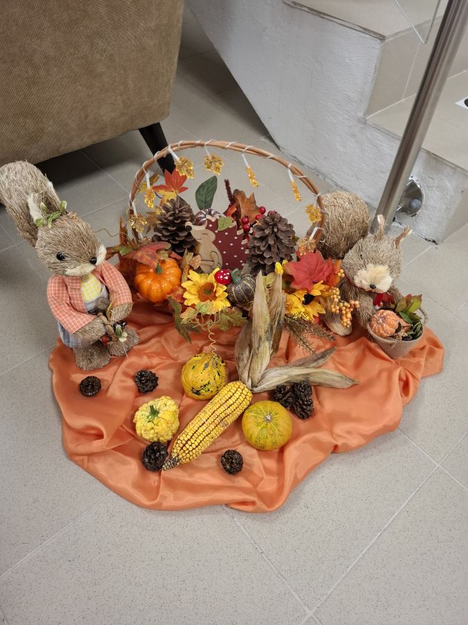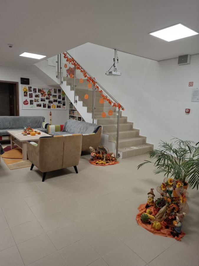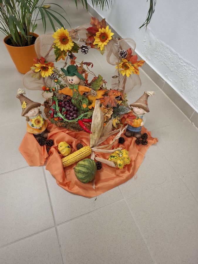 Természetesen az őszi dekorációk sem maradtak el: faragott tökfigurákkal, kedves kis manókkal, falevelekből és termésekből készített díszekkel tettük színesebbé belső közösségi tereinket és a kollégium külső környezetét. A közös munkához mindenki hozzátett valamit, így lett igazán a miénk.