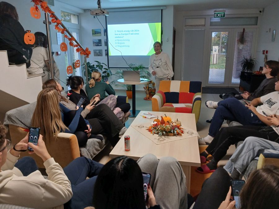 Szeptemberben és októberben érdekes találkozók is zajlottak nálunk, amelyeken fontos témákat érintettünk. Például tűzoltók érkeztek hozzánk előadást tartani, és nemcsak a tűzoltásról, hanem a felelősségről és gyors döntéshozatalról is sokat tanultunk tőlük. Egy másik alkalommal egy egészségügyi szakember látogatott meg minket, hogy a testi-lelki egyensúlyról beszélgessünk, őszintén, tabuk nélkül.