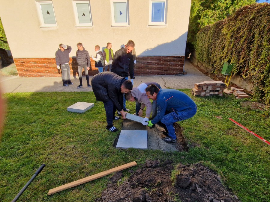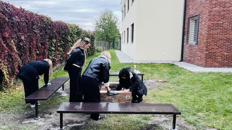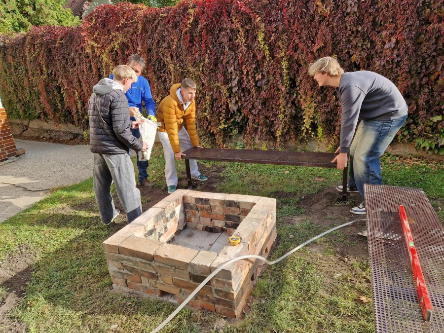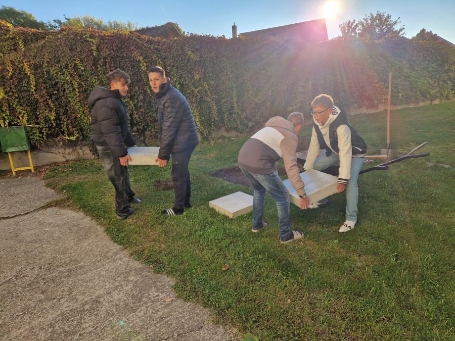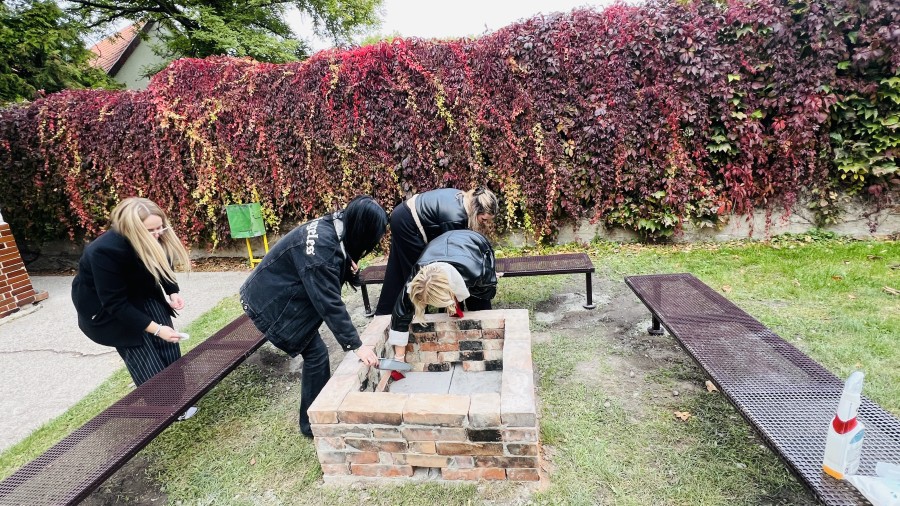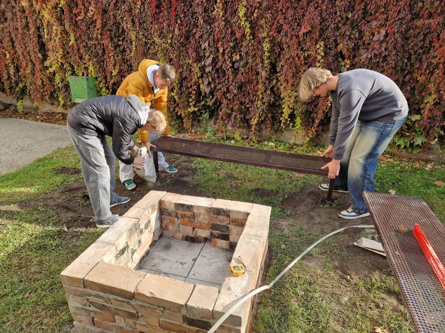 A tűzrakóhely kialakításában maguk a diákok is aktívan közreműködtek a nevelőnők irányítása mellett. A technikai támogatást az iskola karbantartója biztosította, aki a szakszerű kivitelezésért és a biztonsági módosításokért felelt. A tűzrakóhely elérhető anyagokból épült, környezete pedig úgy lett kialakítva, hogy könnyen karbantartható legyen. A kényelmes együttlét érdekében kerti padokat is sikerült elhelyeznünk.