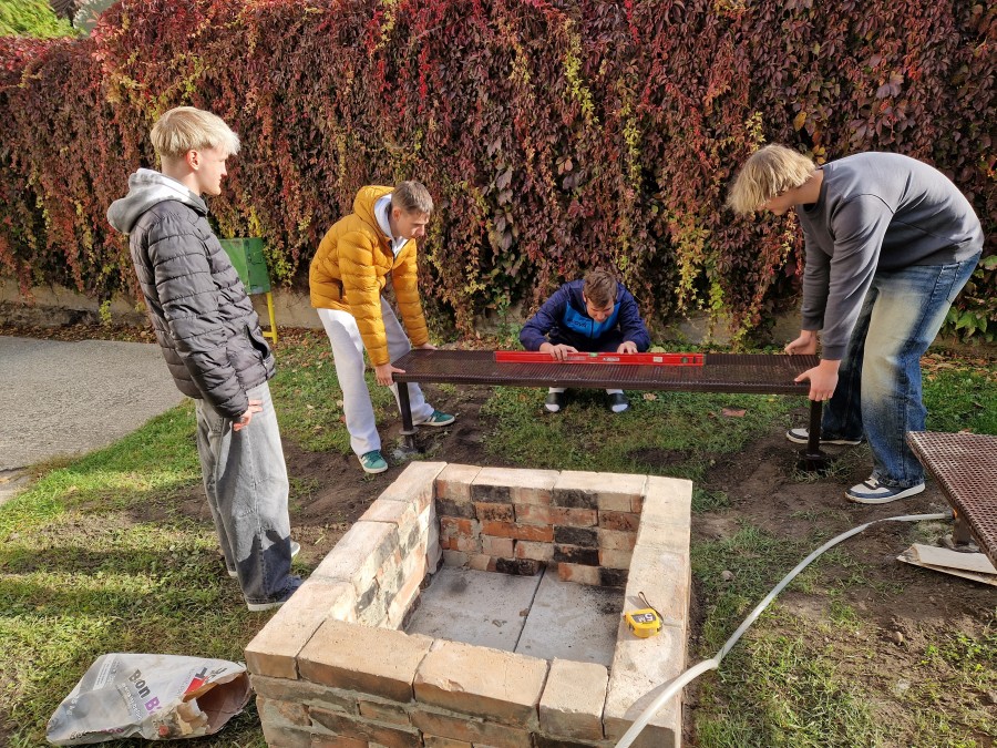 Na realizácii ohniska sa aktívne podieľali samotní študenti pod vedením vychovávateľov. Technickú pomoc zabezpečil školský údržbár, ktorý dohliadol na odborné osadenie aj na bezpečnostné úpravy. Ohnisko bolo vybudované z dostupných materiálov a jeho okolie upravené tak, aby si nevyžadovalo náročnú údržbu. Na sedenie pribudli aj záhradné lavičky.