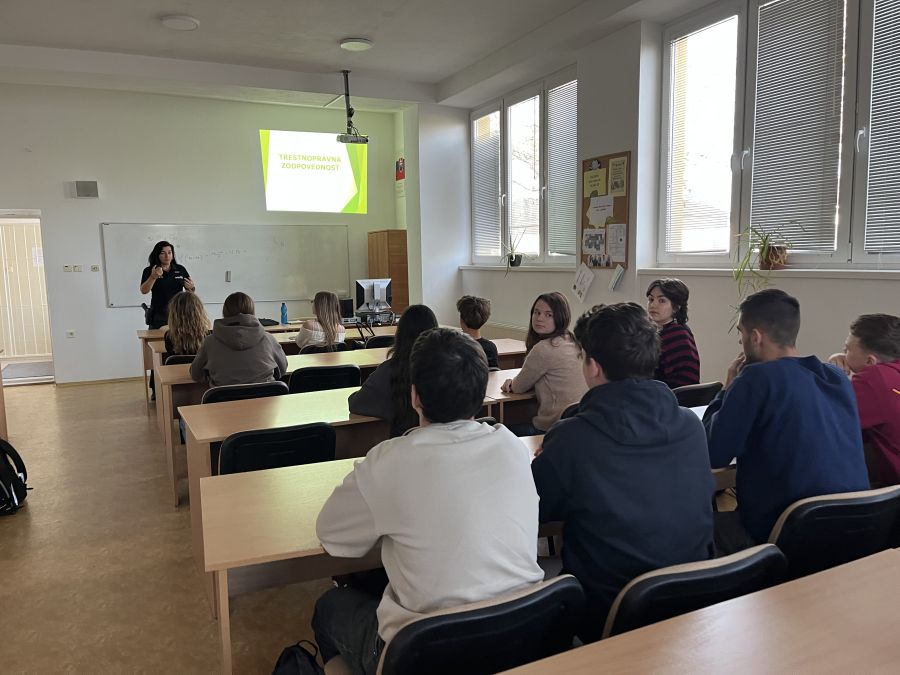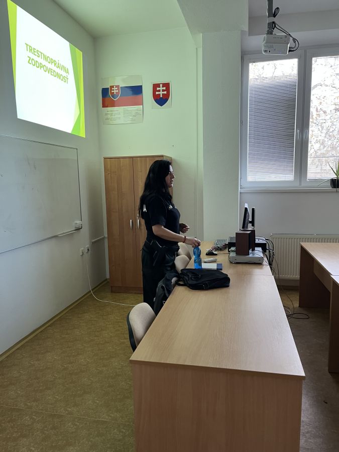 Témou prednášky bola trestnoprávna zodpovednosť a zodpovedné správanie mladistvých. Mgr. Végh podrobne vysvetlila, aké následky môžu mať priestupky a trestné činy, a v akom veku môže byť človek právne zodpovedný za svoje činy. Zdôraznila dôležitosť prevencie, uvedomelého rozhodovania a zodpovedného správania, ktoré sú nevyhnutné pre bezpečný a harmonický život v spoločnosti.