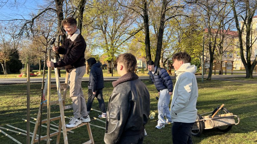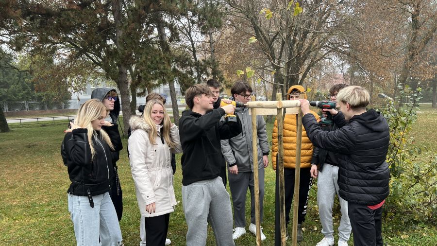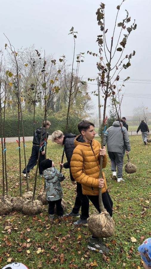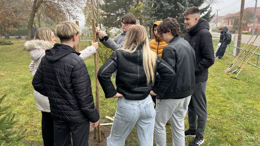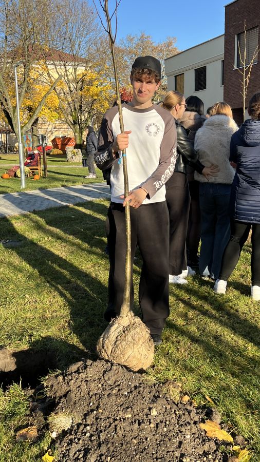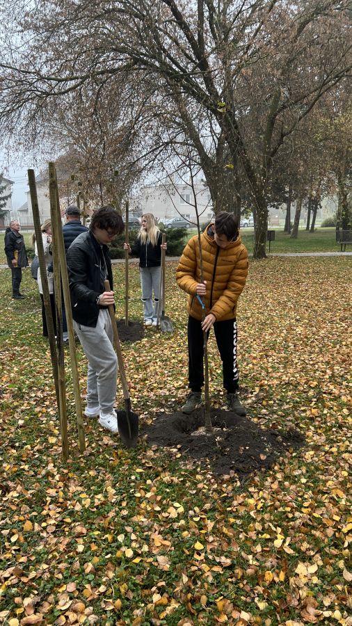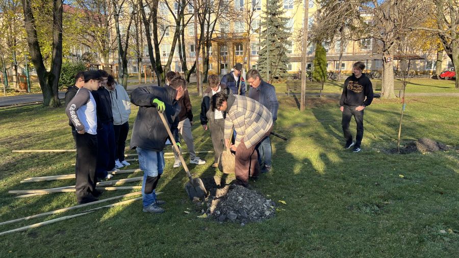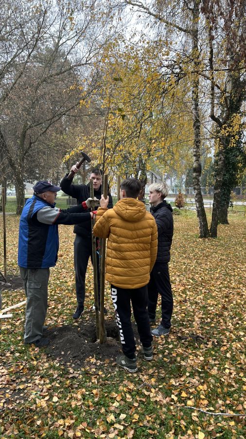 Dňa 18. novembra sme realizovali výsadbu stromov v parku pri školskom internáte, kde sme vysadili 4 lipy ako spoločný pamätný strom pred stužkovou slávnosťou. Do výsadby sa zapojili žiaci spolu so svojimi triednymi učiteľmi, čím sa projekt stal príležitosťou na spoločné trávenie času a získavanie skúseností o dôležitosti starostlivosti o prírodu.