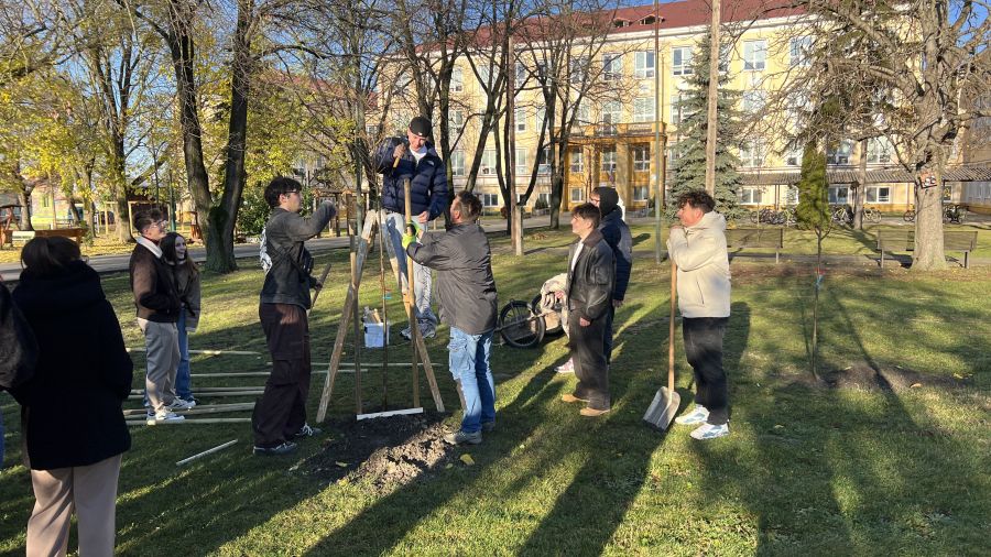 A közelgő szalagavató alkalmából november 18-án iskolánk kollégiumának parkjában további 4 hársfát ültettünk közös emlékfaként. A diákok és osztályfőnökeik együtt dolgoztak, így a projekt lehetőséget biztosított a közös időtöltésre és annak a felismerésére, hogy felelősek vagyunk a természetért.