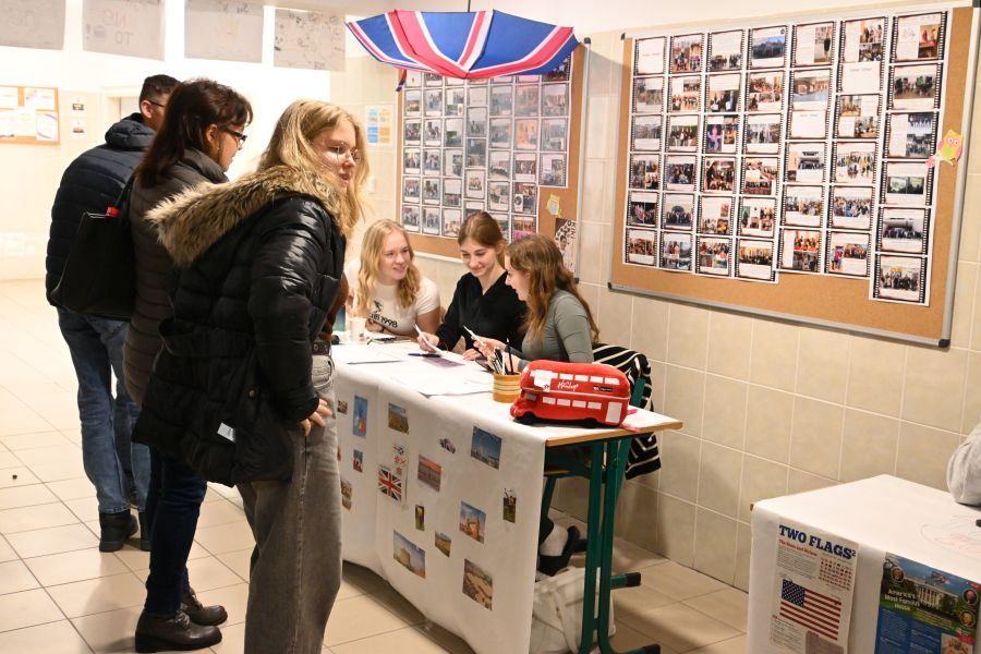 Szerdán és csütörtökön, a diákcégek versenyével párhuzamosan zajlott a Nyitott kapuk napja, amelyen az iskolánk iránt érdeklődő alapiskolás tanulók és szüleik vehettek részt. Szép számban megjelent vendégeink részletes tájékozatót kaptak a nálunk oktatott tanulmányi szakokról, iskolánk oktató-nevelő programjáról, a felvételi vizsgákról és a diákéletről. Az ezt követő suliséta során vendégeink betekinthettek a diákcégek életébe, különféle játékos foglakozásokba kapcsolódhattak be (angol, gépelés, programozás, logikai játékok), emellett megtekintették a tanirodák kiállítást is. Reméljük, hogy az érdeklődők megbizonyosodtak arról, hogy érdemes intézményünk diákjának lenni.