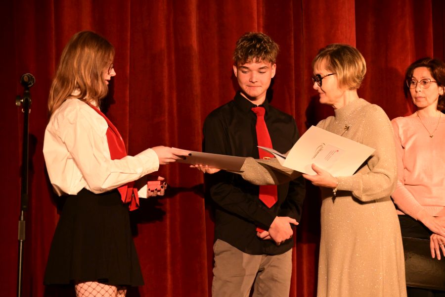 Az Akadémia hét első napján, kedden zajló diákrendezvényeknek a Corvin Mátyás Művelődési Központ adott otthont. A délelőtti program az új diákönkormányzat bemutatkozásával indult, amelynek programját Földes Krisztina (III.A) ismertette, amit egy rövid díjátadó ünnepség követett. Iskolánk igazgatónője, Mgr. Horváth Erzsébet személyesen adta át Martina Zipserovának (II.A) és Rácz Patriknak (II.A) a világszerte elismert Edinburgh Hercege Nemzetközi Díj bronz fokozatát. Délelőtti rendezvényünket az elsősök vidám hangulatú avatási műsora és eskütétele zárta. Este ugyanitt zajlott a nagy sikerű gólyabál, amelynek elején bemutatkozott az előző héten megválasztott új diákdiri, Cséfalvay Péter (III.B), aki átvette a diákönkormányzat leköszönő vezetőségétől a jelképes stafétát. A bál a kulturált szórakozáson kívül remek alkalmat teremtett az elsősök számára a beilleszkedésre, a felsőbb évfolyamok tanulóival való ismerkedésre.