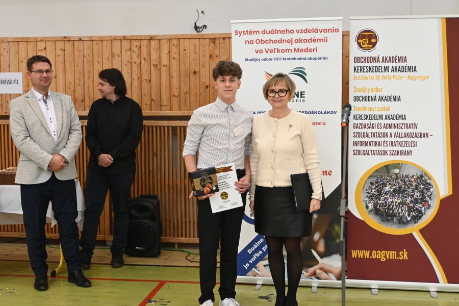 Domáca súťaž cvičných firiem prebehla v školskej telocvični v dňoch 19. – 20. 11. 2025, kde štvrtáci predstavili svoje firmy, ktoré si vytvorili sami. Štvrtáci si mali možnosť vyskúšať svoje odborné schopnosti a jazykové znalosti, ukázať dopodrobna vypracované katalógy, marketingové (reklamné) materiály a výzdobu výstavných stánkov. Hlavnú cenu (The Best Practice Firm) vyhrala firma BOOK NOOK CAFE, cenu značky – PHOENIX EVENTS, cenu za Najlepšie propagačné materiály – PHOENIX EVENTS, cenu za Najlepší nápad – Gamer Geeks s.r.o., Cenu profesionality firmy – PHOENIX EVENTS, Cenu sympatie – BOOK NOOK CAFE. Našu školu budú na Medzinárodnej výstave cvičných firiem v Győri reprezentovať členovia tímu BOOK NOOK CAFE. Ďalej boli udelené ceny za individuálne výsledky: Najlepší reprezentant /reprezentantka / v slovenskom jazyku – Dominik Šimovič, Najlepší reprezentant /reprezentantka / v maďarskom jazyku – Kamilla Csíkászová, Najlepší reprezentant /reprezentantka / v anglickom jazyku – Viktor József Antal.