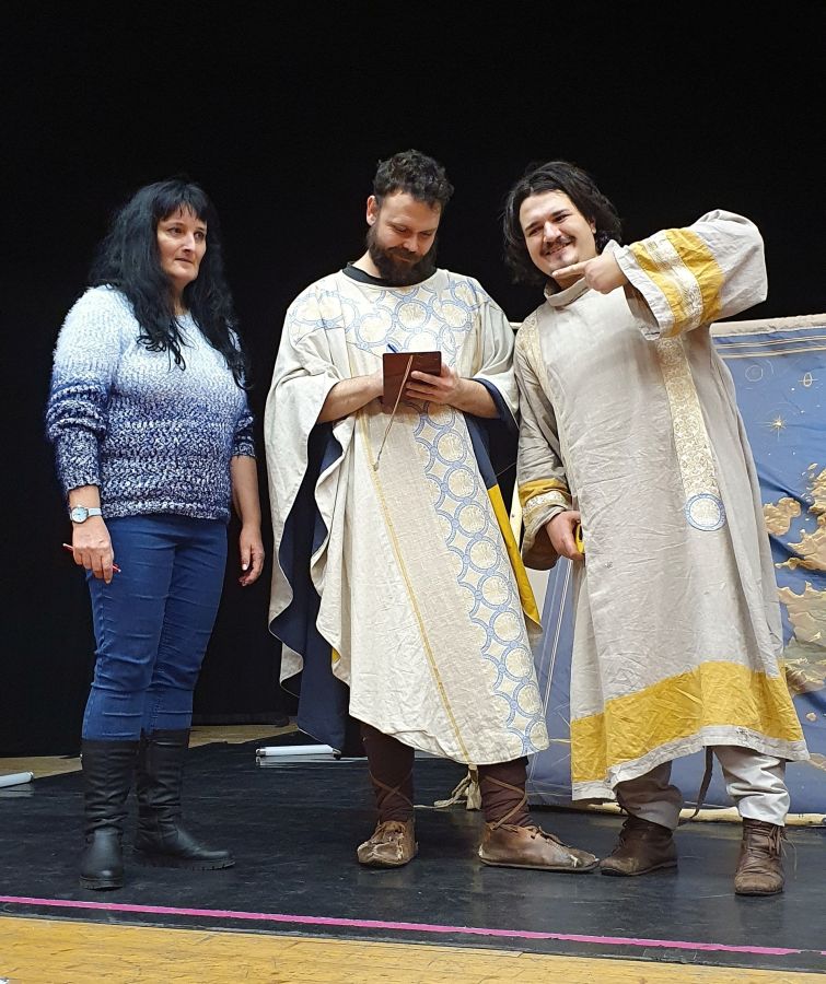 A két színész – a szaloniki testvérek megformálói – kiválóan alakították szerepeiket, végig fenntartották a diákok figyelmét, és közvetlen módon adták át az ismereteket. Természetesen kíváncsiak voltak a diákok visszajelzéseire is, akik elismerésüket fejezték ki a darabbal kapcsolatban. Bízunk benne, hogy még lesz alkalmunk hasonlóan igényes előadásokon részt venni. Köszönjük a lehetőséget.
