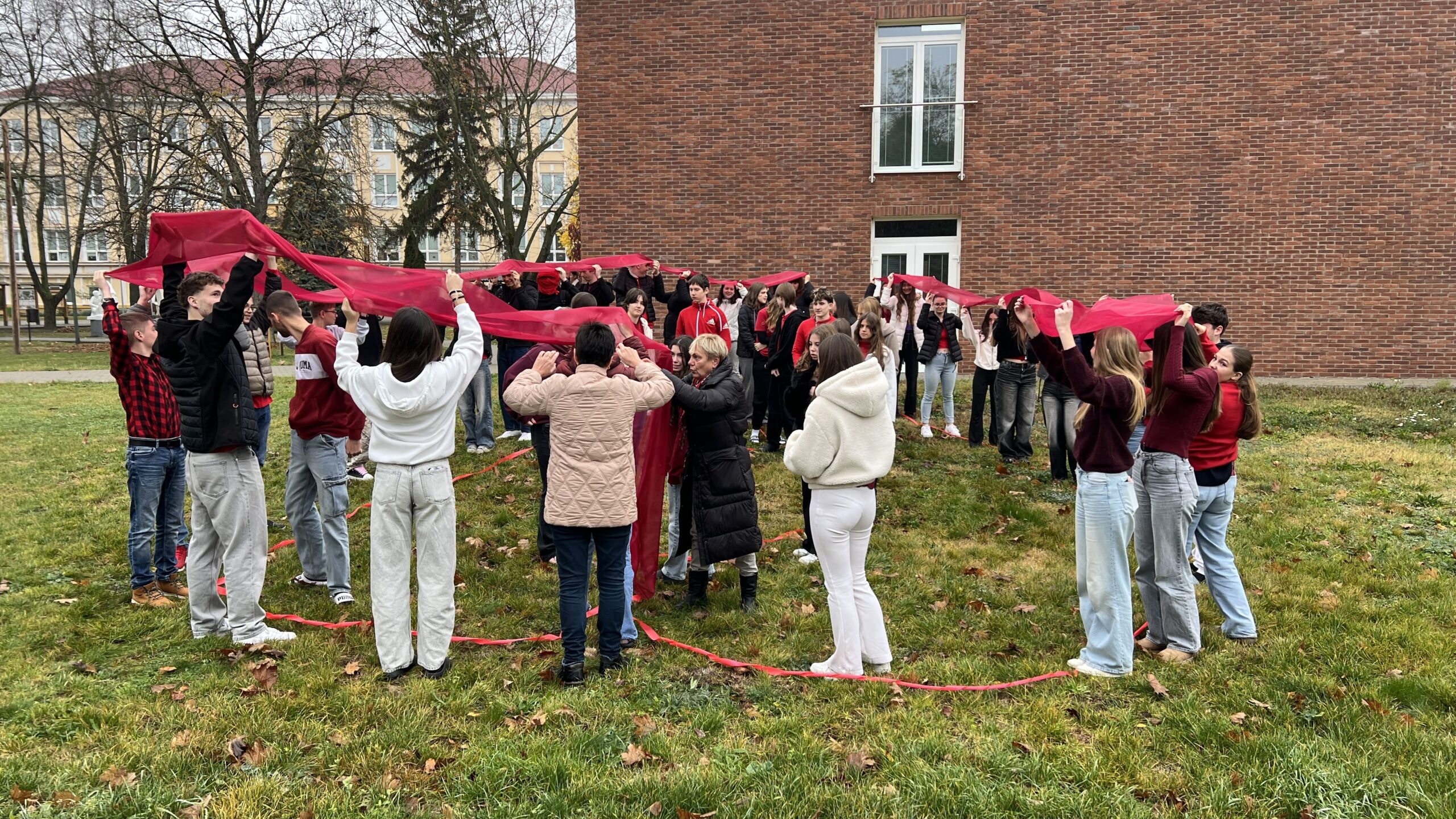 A program egyik kiemelt eleme egy különleges élőkép volt: tanulóink egy dobogó szívet formáltak meg, amely egy piros szalagot ölelt körül, így szimbolizálva a szolidaritást és a közösség erejét. Diákjaink emellett egy héten keresztül saját maguk készítette piros szalagokat is viseltek, sőt az osztályok egy ismeretterjesztő kisfilmet is megtekintettek a témával kapcsolatban, amely segített elmélyíteni a kampány üzenetét, és beszélgetéseket indított tanulóink körében a támogatás és elfogadás fontosságáról. Büszkék vagyunk arra, hogy diákjaink aktívan és lelkesen kapcsolódtak be a kampányba.