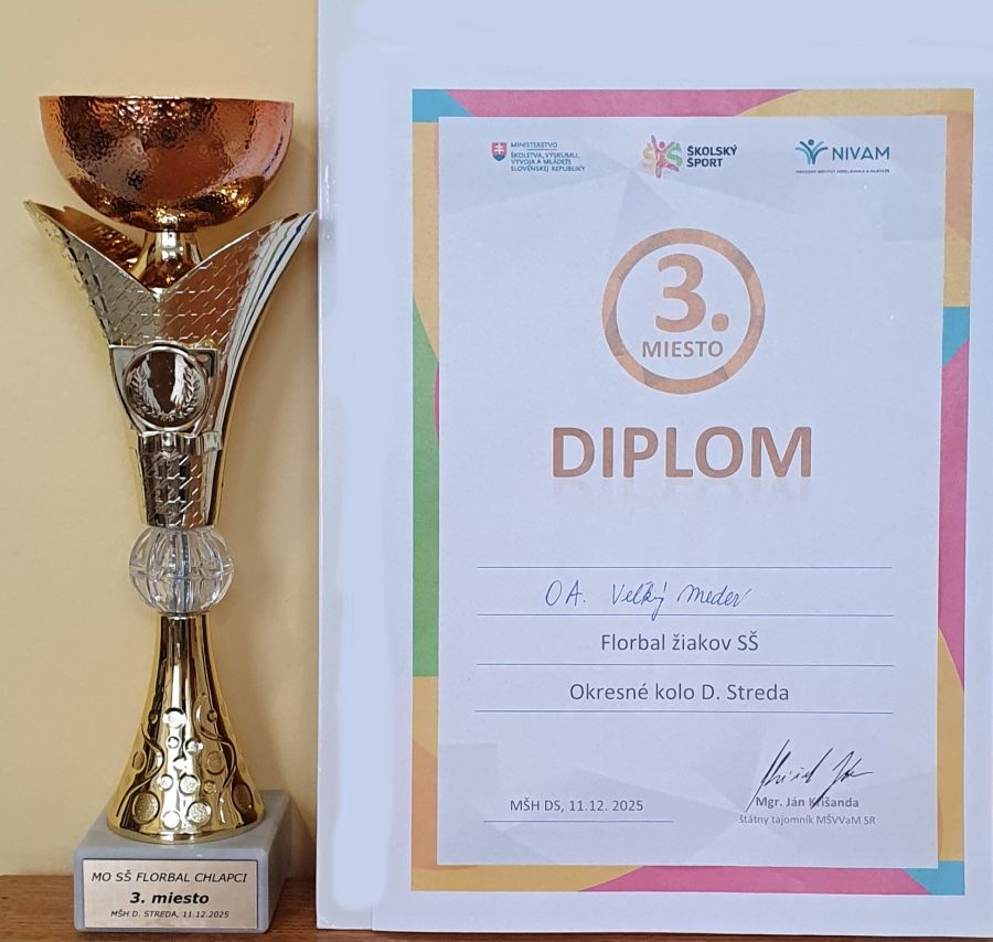 Dňa 11. decembra 2025 sa študenti našej školy zúčastnili okresného kola majstrovstiev vo florbale. Turnaj sa uskutočnil v Mestskej športovej hale v Dunajskej Strede s účasťou šiestich škôl. Naši florbalisti po odohraní zápasov skončili na 3. mieste. Študentom ďakujeme za reprezentáciu našej školy.