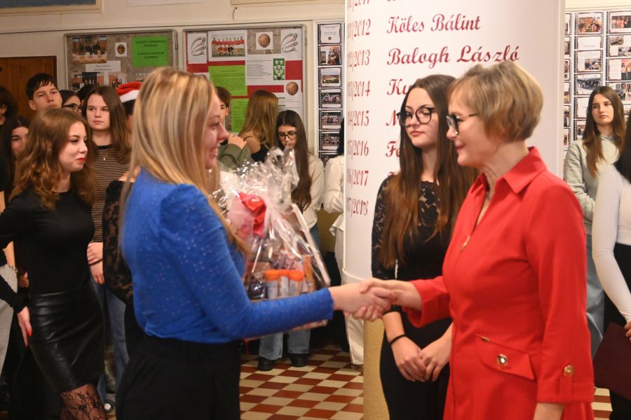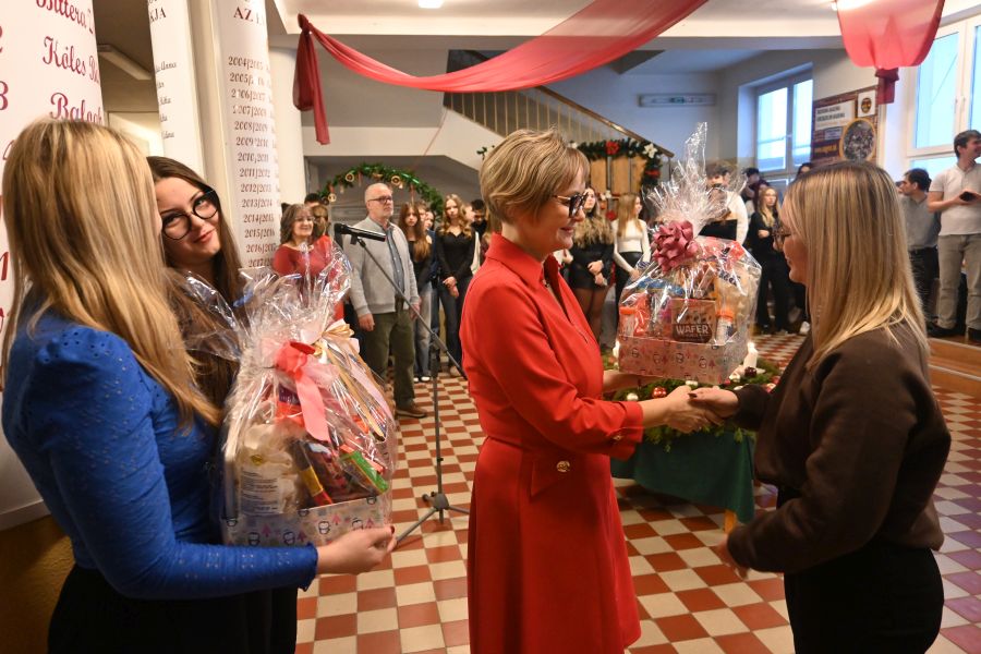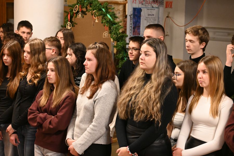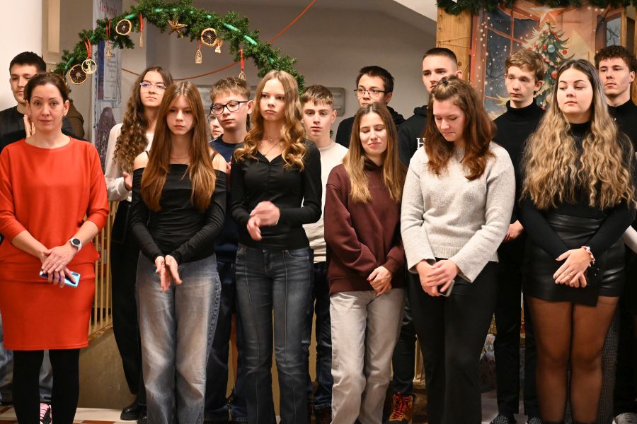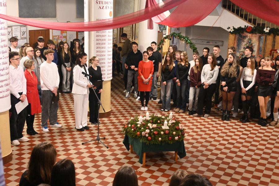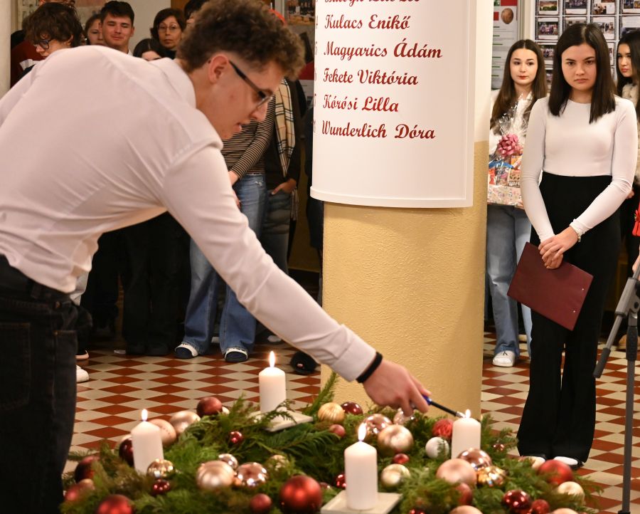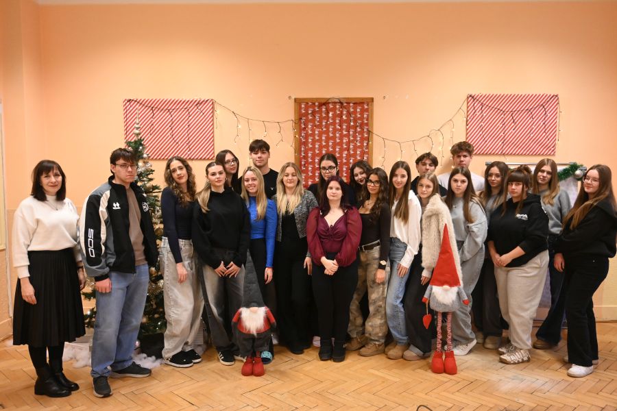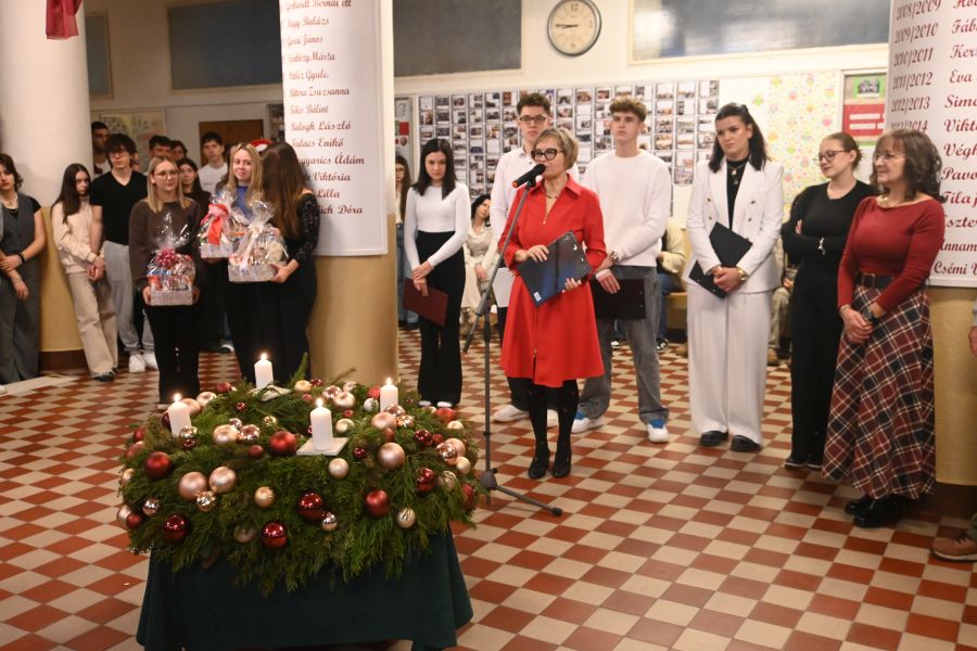 A Nagymegyeri Kereskedelmi Akadémián a karácsonyvárás időszaka az utolsó tanítási napon, 2025. december 19-én érte el csúcspontját. A nap egy meghitt ünnepséggel kezdődött: az iskola központi folyosóján elhelyezett adventi koszorú negyedik, egyben utolsó gyertyájának meggyújtásával. E kis ünnepség keretében került sor a diákönkormányzat által meghirdetett „A leghangulatosabb karácsonyi díszbe öltöztetett osztály” elnevezésű verseny eredményhirdetésére is. A legszebben és leghangulatosabban feldíszített tanteremért járó díjat megosztva a II.B és a III.A osztályok nyerték el. A dobogó második helyére a II.C osztály természetes alapanyagokkal dekoráló diákjai juttatták osztályukat. Az ünnepséget követően az egyes osztályok saját tantermeikben folytatták a hangulatos karácsonyi együttlétet. Az osztályfőnöki órák keretében a tanulók megajándékozták egymást, valamint közös teázásra is sor került. Ezt követően a nap és az adventi időszak méltó zárásaként tanulóink ünnepi műsorát tekinthettük meg a nagymegyeri katolikus templomban. Ezúton is köszönetünket fejezzük ki Gál Adrián atyának, akinek gondolatai tovább mélyítették az ünnep meghitt hangulatát. A közös program befejeztével búcsút vettünk egymástól, és mindenki számára kezdetét vette a várva várt téli szünet.