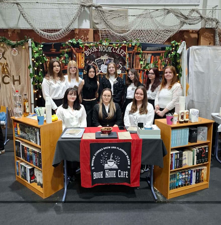Különös büszkeséggel tölthet el bennünket, hogy a szakavatott zsűri a becses II. helyezést a BOOK NOOK CAFÉ elnevezésű diákcégünknek ítélte. Ez az elismerés nemcsak a versenyen nyújtott kiváló teljesítményt tükrözi, hanem a hosszú hónapokon át tartó kitartó munkát, az együttműködést és a diákok elhivatottságát is. A siker mögött egy lelkes és tehetséges csapat áll, akikre méltán lehetünk büszkék. A BOOK NOOK CAFÉ diákcéget a IV.B osztály tanulói alkották, név szerint: Bertalan Bianka, Csíkász Kamilla, Fekete Zsófia, Glofák Viktória, Kristóf Anna, Nagy Nikolett, Nagy Vivien, Németh Tünde, Olgyay Réka, Sebők Viktória és Sidó Rebeka. A versenyre ellátogattak iskolánk harmadik évfolyamának tanulói is, akik nagy érdeklődéssel követték az eseményeket, jelenlétük emellett nagy támogatást jelentett a versenyzőink számára is.
